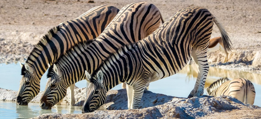 Auch heute gehst du wieder auf Pirsch im Etosha. So oft es geht steuerst du Wasserlöcher an und beobachtest Springböcke, Zebras, Oryxantilopen und Elefanten beim Baden und Trinken. Du fährst ein Stück direkt an der riesigen Salzpfanne entlang, die sich kilometerweit nach Norden erstreckt und schon aus der Ferne weiß schimmert. Du siehst Tierherden, die am Rand entlangwandern, einige wagen sich auch in die Salzpfanne. Wir nähern uns der Wasserstelle Klein-Namutoni, in deren Umgebung häufig das kleine Damara-Dikdik gut getarnt am Wegesrand steht. Hier legen wir den letzten Stopp ein, bevor wir uns vom Etosha-Park verabschieden und uns auf den Weg zur nächsten Unterkunft machen.
