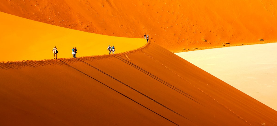 Es ist noch dunkel, wenn du dich auf den Weg machst zu den gigantischen Dünen am Sossusvlei, die zum UNESCO-Weltnaturerbe gehören. Unterwegs zum Vlei genießt du die morgendliche Stimmung in diesem farbintensiven Dünental. Die letzten fünf Kilometer bis ins Vlei legst du in einem Allradshuttle zurück, da normale Fahrzeuge es mit den Sandmassen nicht aufnehmen können. Du spazierst durch die zauberhafte Dünenwelt und versuchst, einen der bis zu 350 Meter hohen Sandberge zu erklimmen. Sobald du durch das Dead Vlei mit seinen über 500 Jahre alten abgestorbenen Akazien wandelst weißt du, dass es seinen Namen zu Recht trägt. Falls du bereits am späten Nachmittag in deiner Unterkunft das Meer aus Sand vermisst, greif doch mal in deine Hosentasche oder schau‘ in deine Schuhe, wo du sicherlich noch einige rötliche Körner findest. Du übernachtest in derselben Unterkunft wie am Vortag. Frühstück und Abendessen sind inklusive. Die Fahrstrecke umfasst ca. 200 km.