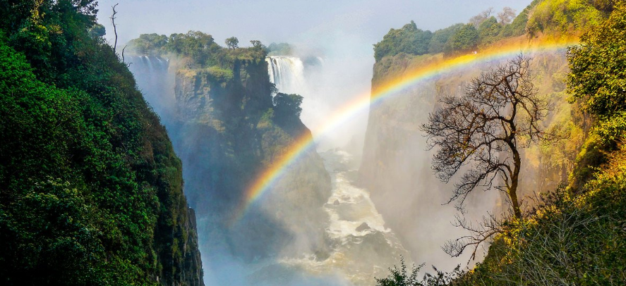 Heute erwartet dich das letzte Highlight deiner Reise. Du besuchst die berühmten Victoriafälle und beobachtest, wie der Sambesi sich mit tosendem Lärm über 100 Meter in die Tiefe stürzt. Nimm dir für den Spaziergang auf dem Rundwanderweg ausgiebig Zeit, denn dort eröffnen sich immer wieder neue Perspektiven und Fotomotive. Der Wasser-Sprühnebel steigt bis zu 200 Meter in die Höhe und ist noch in weiter Entfernung zu sehen, weshalb die Wasserfälle von den Einheimischen »Mosi-oa-Tunya« genannt werden, was so viel wie »donnernder Rauch« bedeutet. Das UNESCO-Weltnaturerbe ist umgeben von tropischem Regenwald – ein wahres Naturparadies, das durch die Feuchtigkeit der immerwährenden Gischt existieren kann. Ein wahrhaft berauschendes Erlebnis!